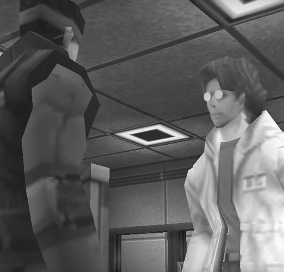 | La solida amicizia tra Solid Snake (a sinistra) e Otacon (a destra) è uno dei fattori che accompagnano il protagonista verso la consapevolezza di poter scegliere il proprio destino |